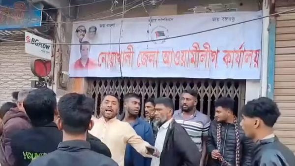 নোয়াখালীতে আ.লীগ কার্যালয়ে স্লোগান দিয়ে নেতাকর্মীরা উধাও!